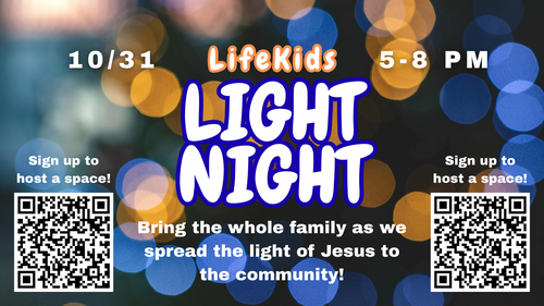 Come celebrate the light of Christ this October at LifeKids Light Night, our annual trunk-or-treat event hosted by One Life Church! This is more than candy—it's a night of joy, connection, and community.